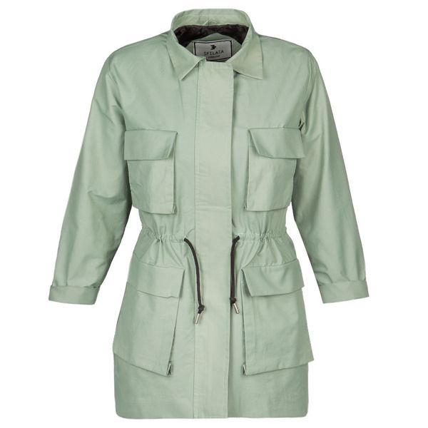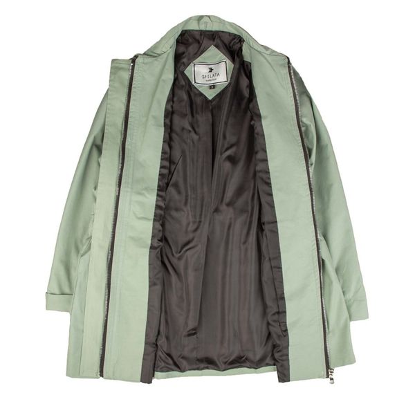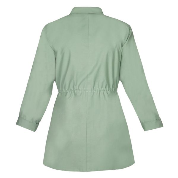 یقه ی این بارانی مردانه است. قد آن کوتاه است.
