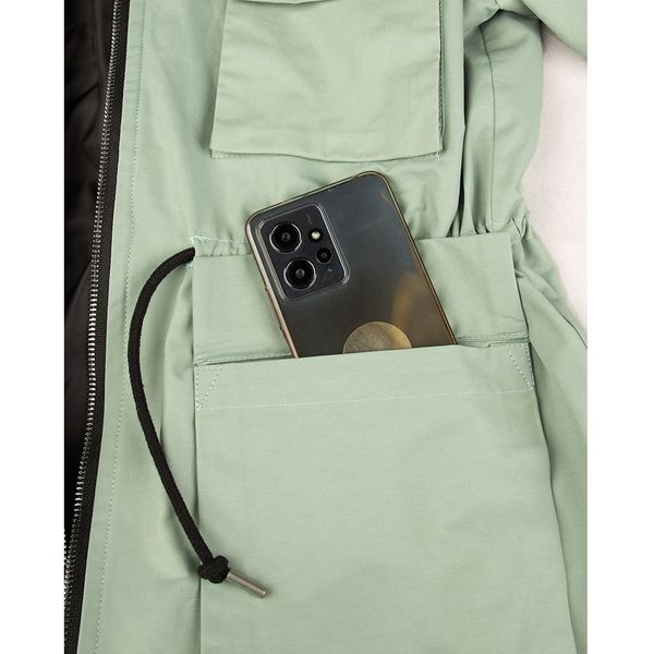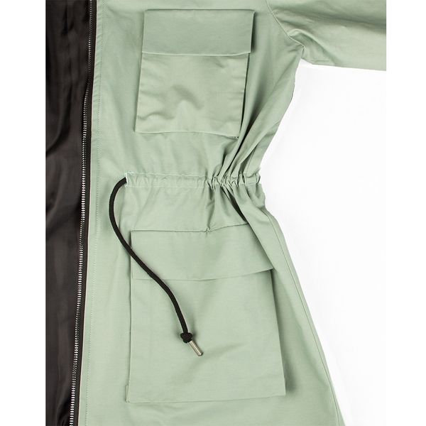 این بارانی با زیپ بسته می شود کمر آن هم گت دار است و می توان به وسیله ی آن، سایز لباس را تغییر داد.