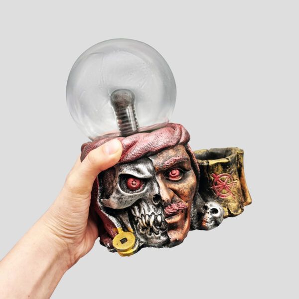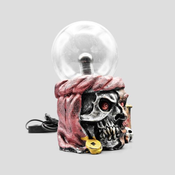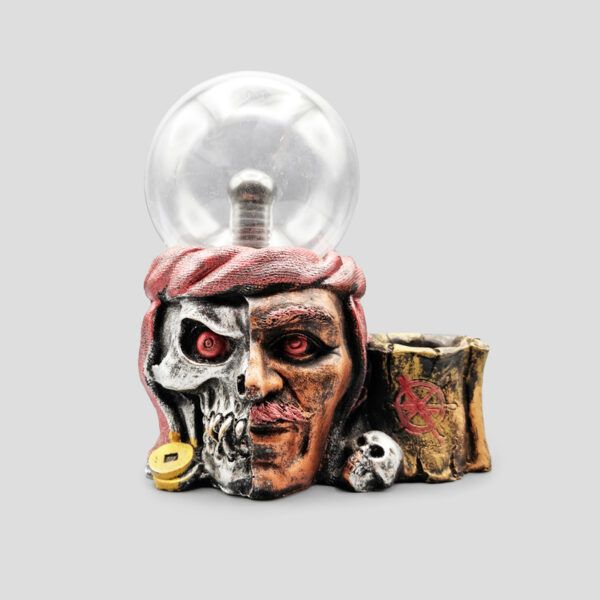 چراغ پلاسما جزو محصولات دکوری و آموزشی در منزل و مناسب اعضای خانواده می باشد. چراغ پلاسما اسکلتی طرح دزد دریایی مدل Pirate، یک نمونه از این محصولات می باشد. این گوی پلاسما اسکلتی میتواند یک هدیه خوب برای علاقه مندان به اسکلت و فیلمهای ترسناک باشد. این چراغ پلاسما اسکلتی طرح یک دزددریایی است که با دندانهایش شمشیرهایش را گرفته است. در کنار این گوی پلاسما یک محفظه به شکل جمجمه که مناسب جای خودکار و قلم است، مشاهده میگردد.