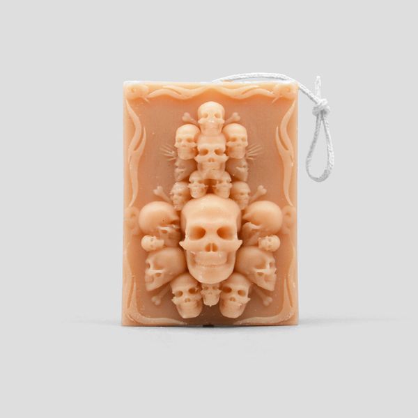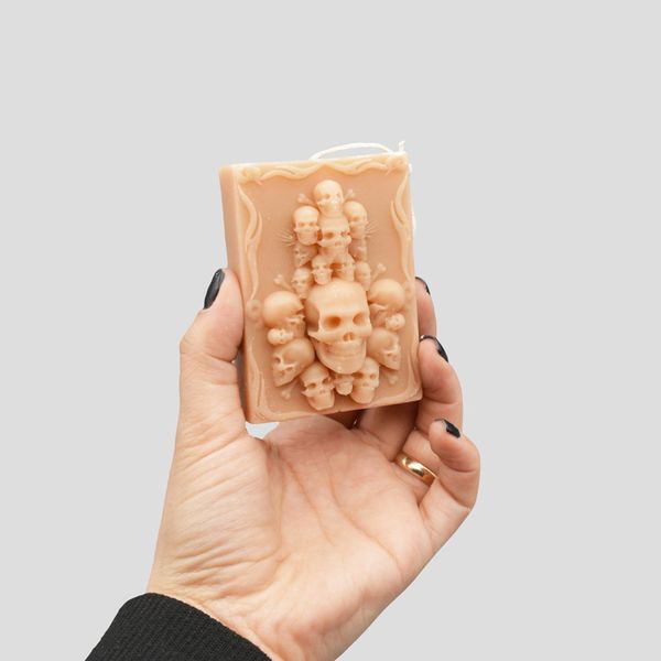 استفاده از شمع در منزل و جشنهای مختلف از قبیل تولد، مهمونی و … غیرقابل چشم پوشی است. شمع مییتواند ساده یا فانتزی باشد. شمع طرح کتیبه اسکلتی یک شمع فانتزی با ظاهری خاص بوده که باعث میشود نگاه هر فرد به آن دوخته شود. بر روی این کتیبه تعداد زیادی جمجمه مشاهده میشود. ظرافت طراحی و ساخت این شمع باعث جذابیت این شمع جمجمه شده است. ابعاد حدودی این شمع 2×5.5×7.5 سانتیمتر بوده و دارای وزن تقریبی 75 گرم است. از این شمع طرح تابوت در مناسبتهای مختلف مانند هالووین میتوان استفاده نمود که جذابیت ویژهای به تم مهمانی میبخشد.