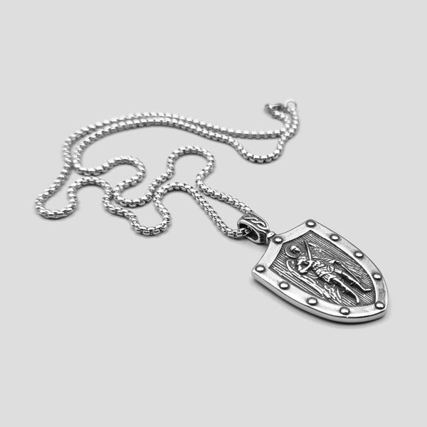 گردنبندها جزو محبوبترین اکسسوری ها و زیورآلات برای خانمها و آقایان هستند. گردنبند کد Njd929، یکی از این گردنبندهای خاص و پرطرفدار میباشد. طرح روی این پلاک، فرشته میکاییل بوده که مطابق نگارههای طراحی شده در کلیساها دارای دو بال و شمشیر در دستش میباشد.