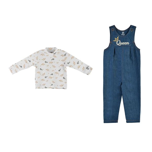 ست تیشرت آستین بلند و سرهمی دخترانه مدل MDSS-CH6511